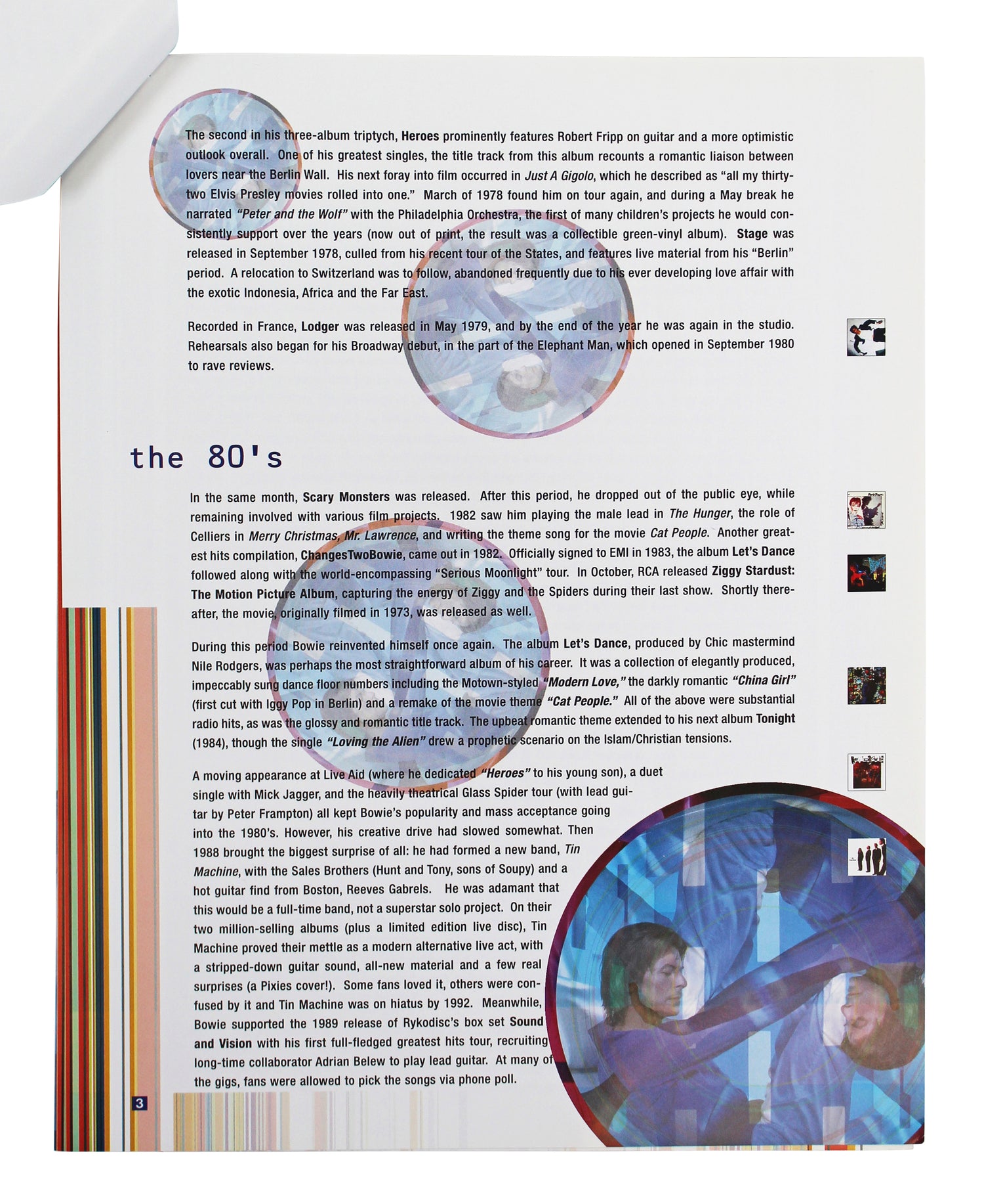• Music History: This Virgin Records press release program from 1999 commemorates Hours, Bowie's first self-produced album post-Tin Machine.