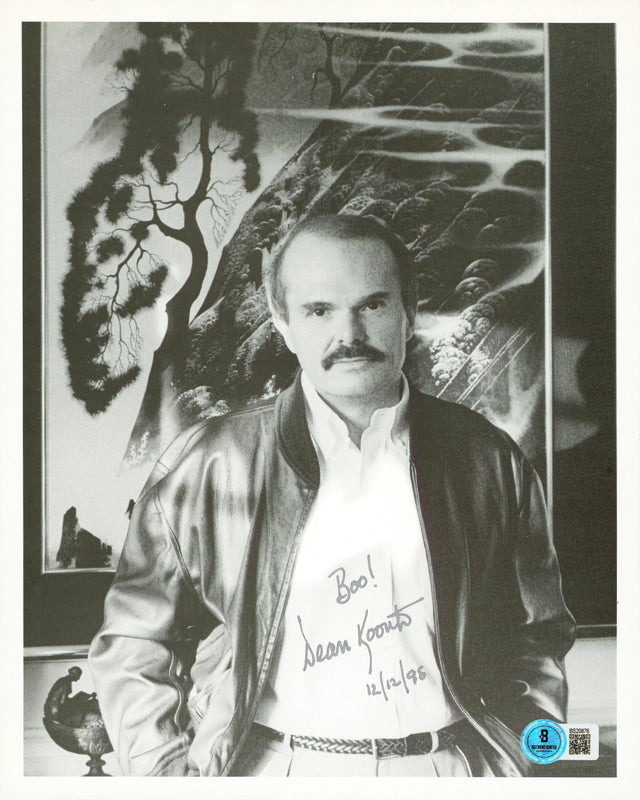 This rare collectible is a must-have for fans of thriller fiction and literary memorabilia. Featuring a personally signed vertical 8.5x11 photo by international bestselling author Dean Koontz, this piece includes the chilling inscription: "Boo!"—a signature nod to Koontz's mastery of suspense and dark storytelling. Known for iconic novels like *Watchers*, *Intensity*, and *Phantoms*, Dean Koontz has captivated readers for decades, and this autographed photo is a striking tribute to his legacy. Authenticated by one of the most trusted names in memorabilia verification, this item is perfect for collectors of signed books, rare author memorabilia, and pop culture enthusiasts alike.