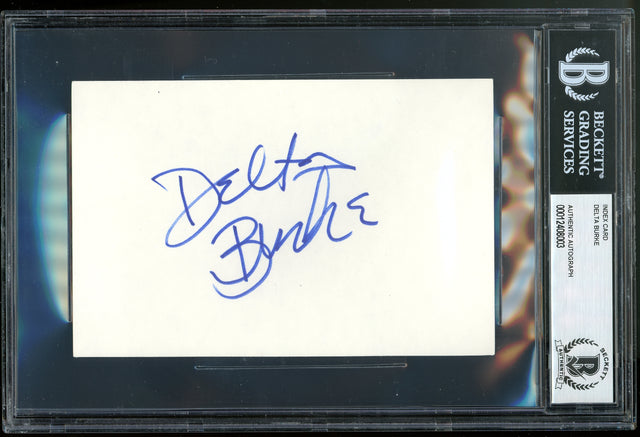 Delta Burke Designing Women Authentic Signed 4x6 Index Card Autographed BAS Slab