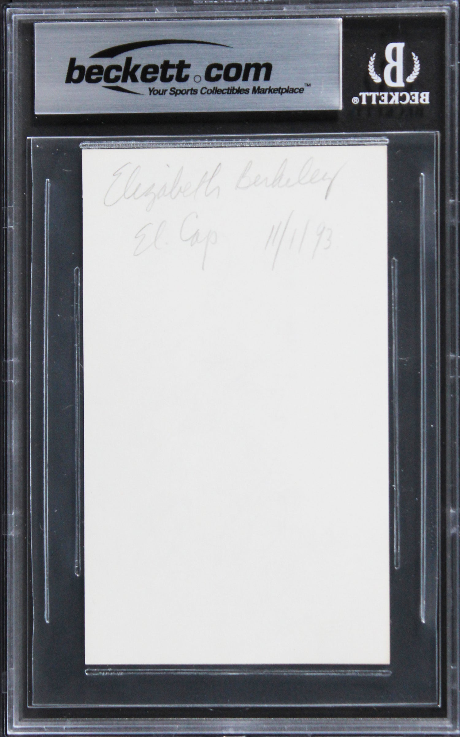 Elizabeth Berkley Saved By The Bell Signed 3x5 Index Card BAS Slabbed 4