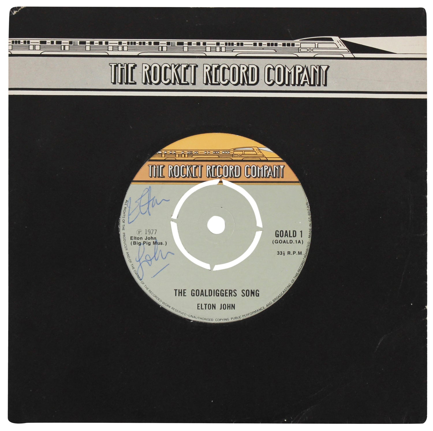 Elton John Signed The Goaldiggers Song 45 RPM Record Vinyl BAS #AD64010
