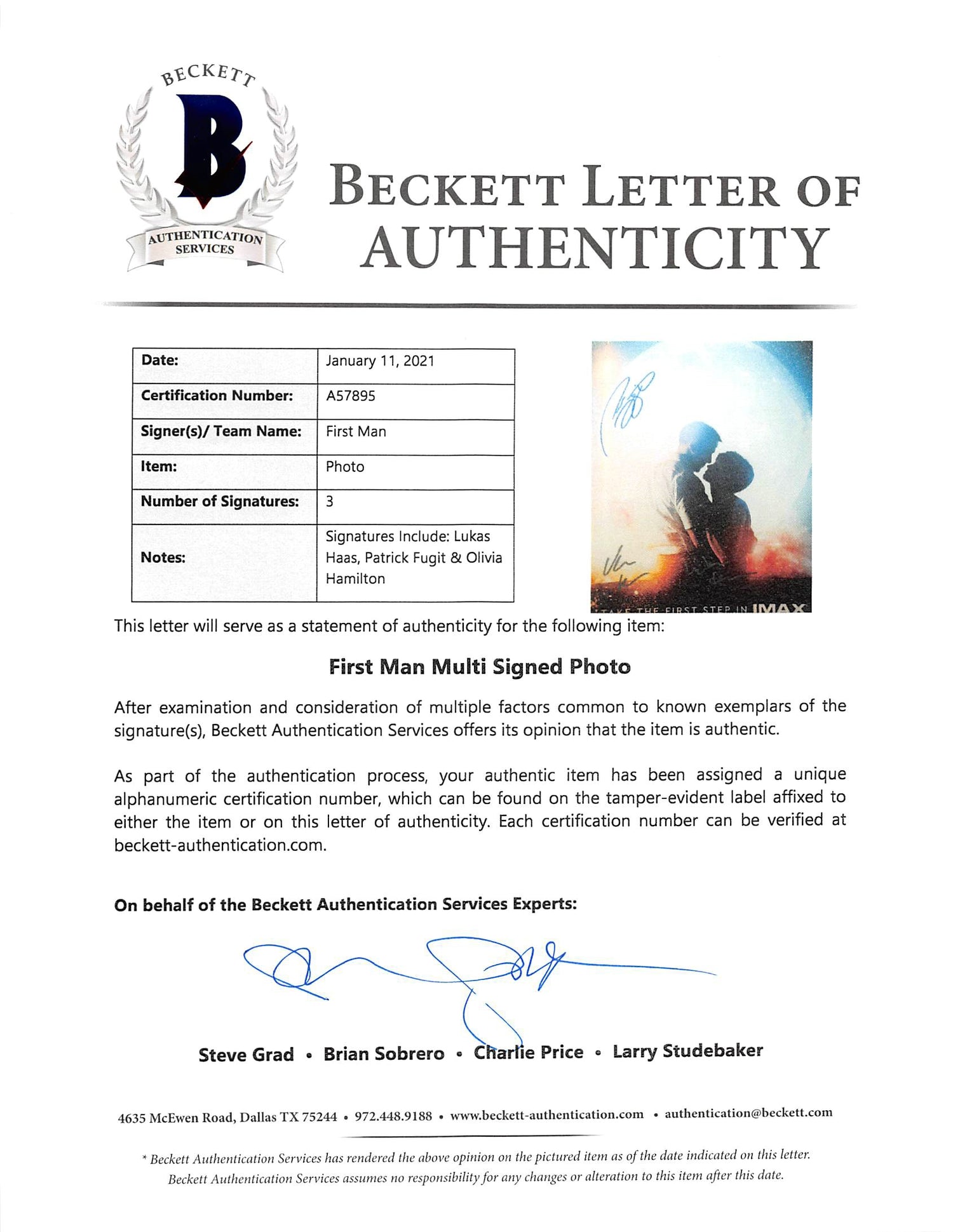First Man (3) Haas, Fugit & Hamilton Authentic Signed 12x18 Photo BAS #A57895 is backordered and will ship as soon as it is back in stock.