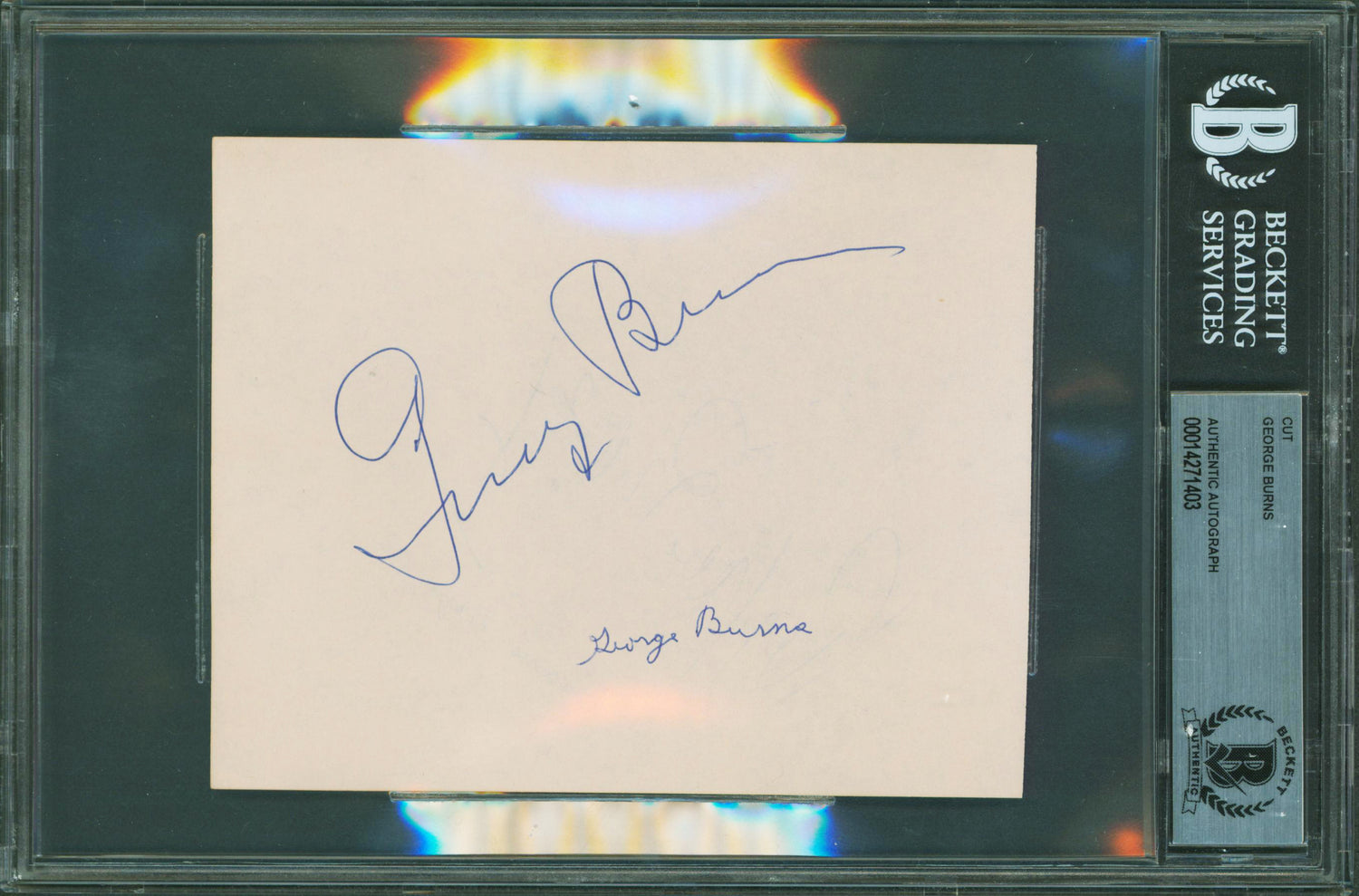 George Burns Authentic Signed 4.5 x 5.5 Cut Signature Autographed BAS Slabbed