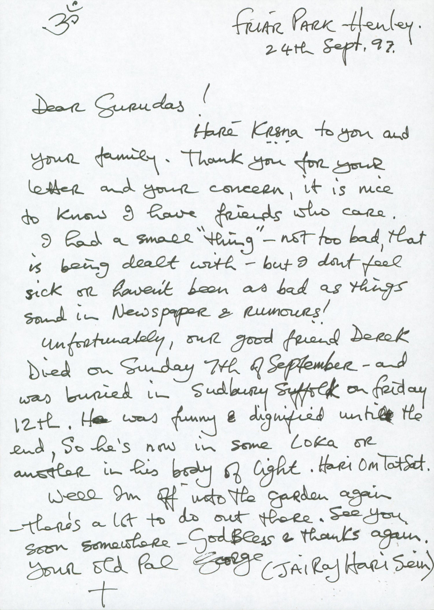 • Authentic George Harrison Signed Letter – Penned entirely in his hand and signed with both his first name and his Hare Krishna name, a rare signature variation.