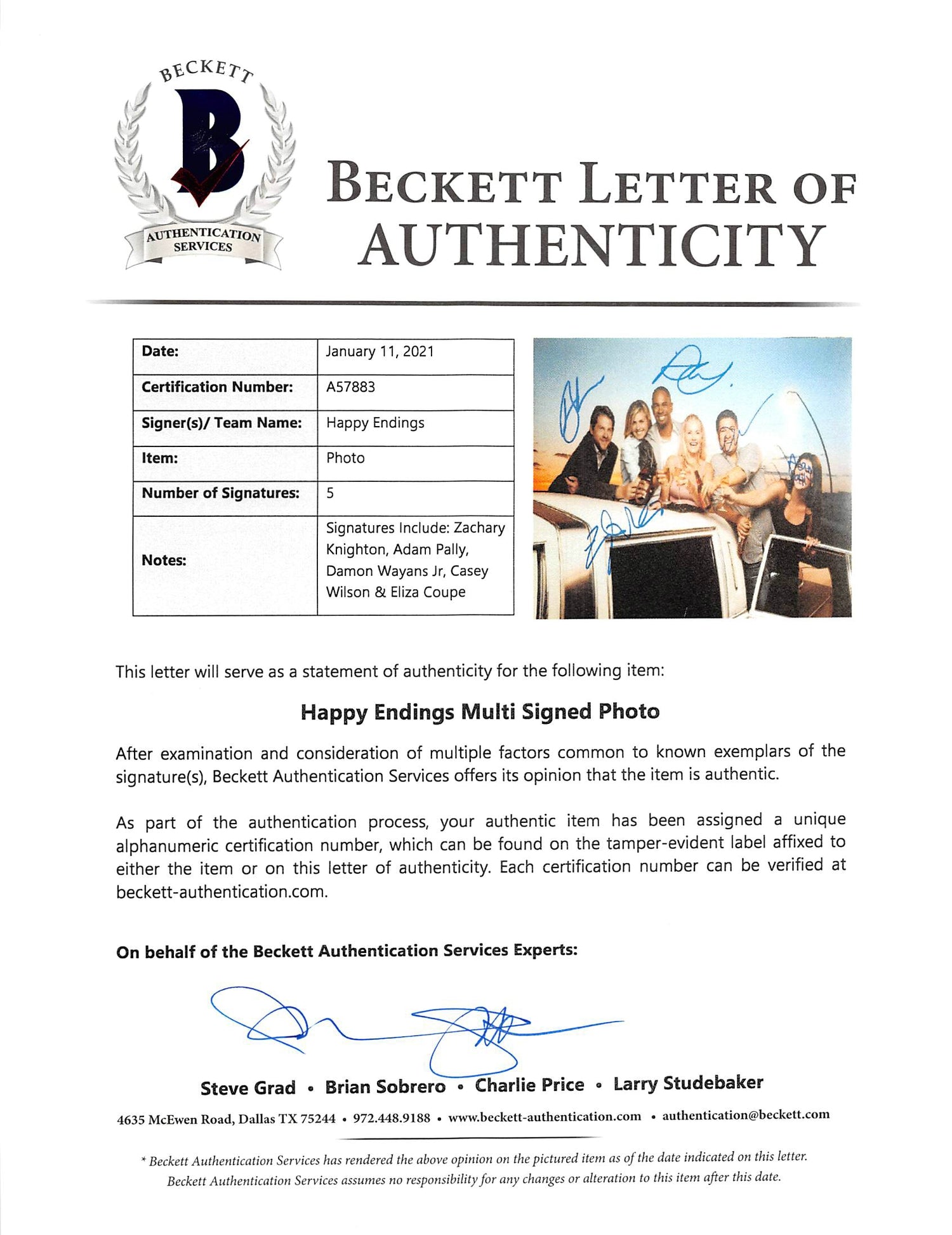 Happy Endings (5) Knighton, Pally, Wayans, Wilson & Coupe Signed 12x18 Photo BAS is backordered and will ship as soon as it is back in stock.