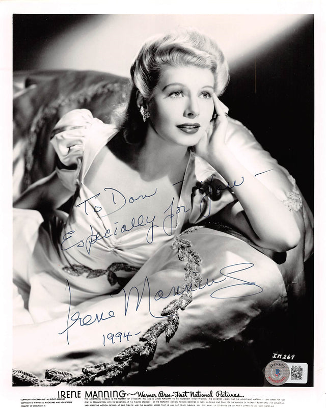 - Personally Hand-Signed by Irene Manning, famed for her role in Yankee Doodle Dandy.