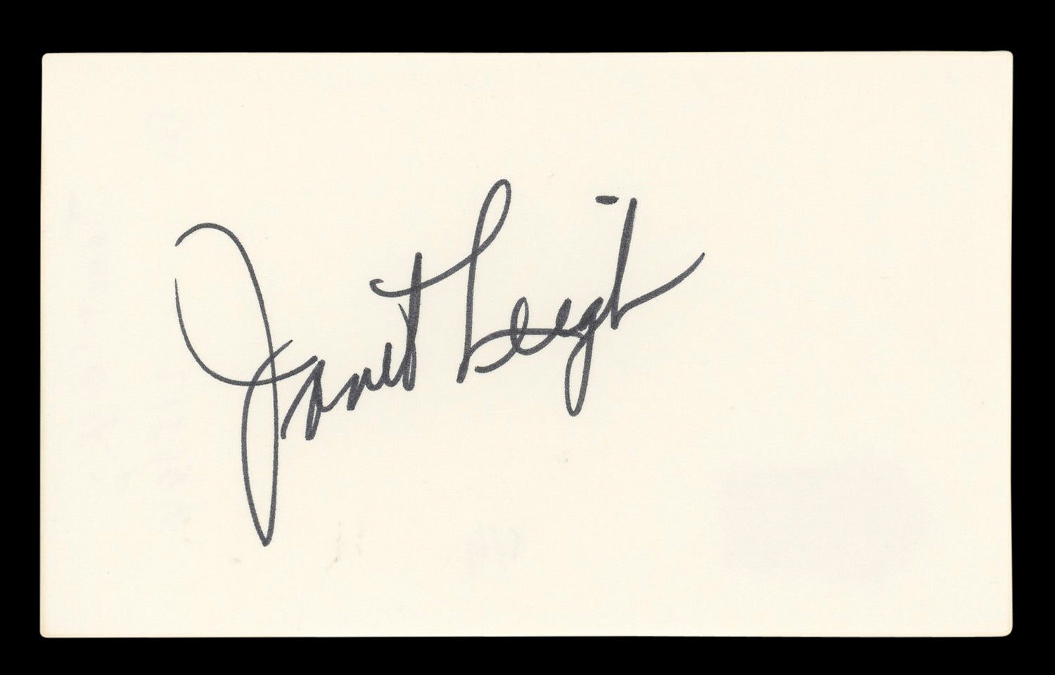 Own a piece of Hollywood history with this Janet Leigh Autographed 3x5 Index Card, personally signed by the legendary actress best known for her iconic role in *Psycho*. This rare collectible is a must-have for movie enthusiasts, classic film collectors, and fans of Alfred Hitchcock’s masterpiece.