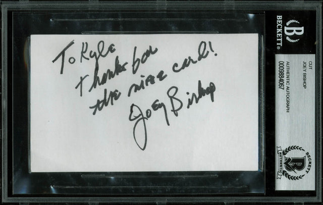 Own a rare piece of Hollywood and Rat Pack history with this Joey Bishop Signed 3x5 Cut Signature—a must-have for collectors and pop culture enthusiasts alike. This authentic hand-signed autograph is professionally slabbed and certified by Beckett Authentication Services (BAS), ensuring its legitimacy and long-term value.