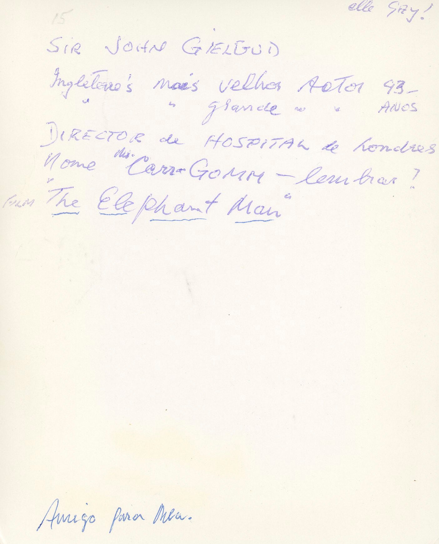 - Autographed by: John Gielgud (Arthur, 1981)
