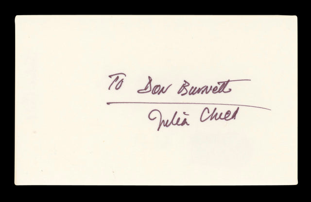 Julia Child Television Host "To Don Burnett" Signed 3x5 Index Card BAS #AD70365