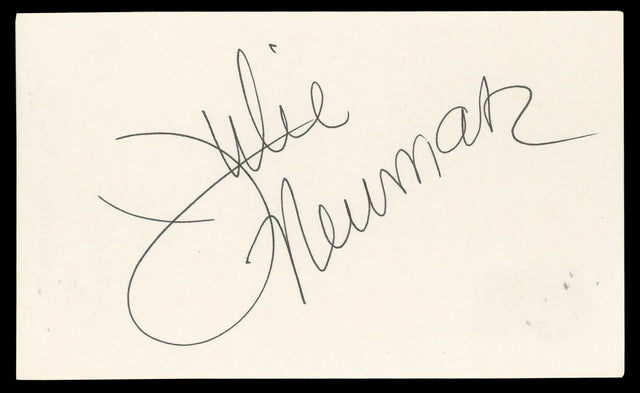 Own a unique piece of Hollywood history with this Julie Newmar Autographed 3x5 Index Card, personally signed by the legendary actress best known for her role in The Marriage-Go-Round and as the original Catwoman in Batman (1966). This collectible is a must-have for dedicated fans and autograph enthusiasts.