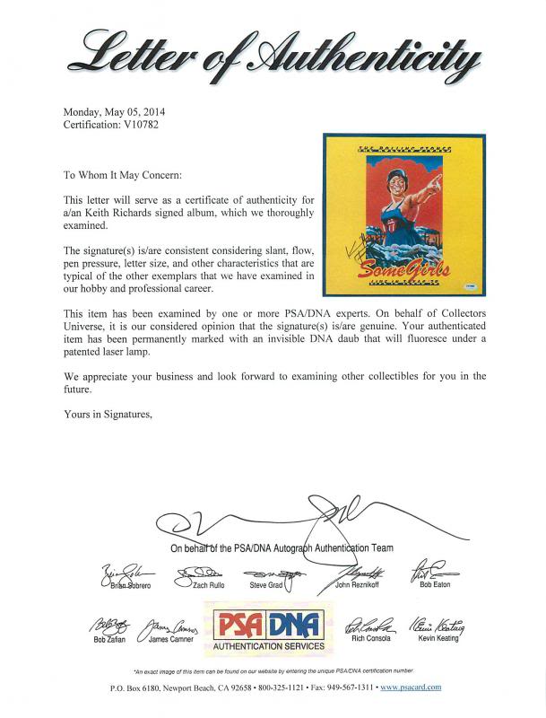 Own a piece of rock & roll history with this Keith Richards Rolling Stones Some Girls Signed Album Cover—a must-have for serious collectors and fans of the legendary Rolling Stones. This rare memorabilia has been certified authentic by PSA/DNA (#V10782), ensuring its legitimacy and value.
