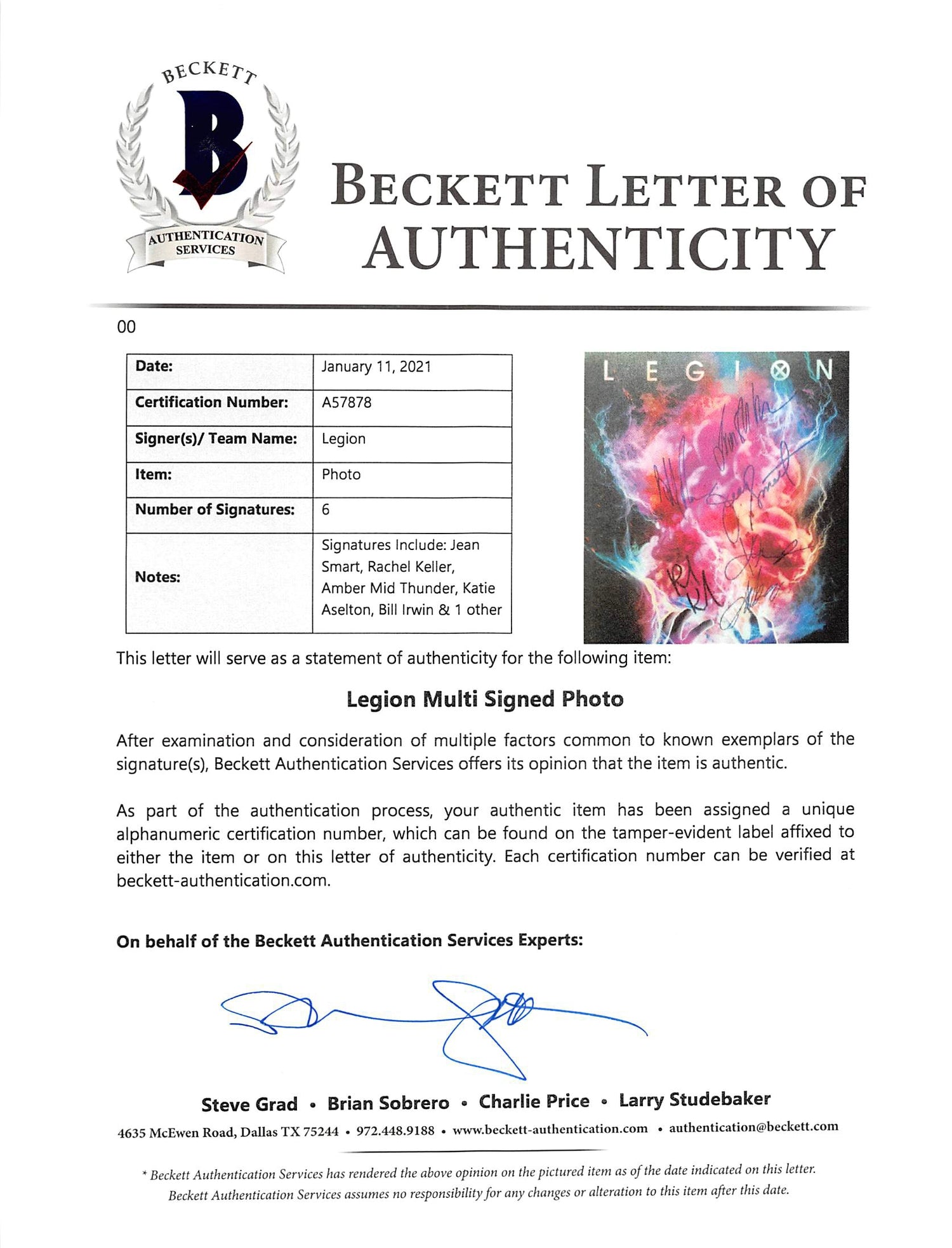 Whether you're a devoted Legion fan or a pop culture memorabilia enthusiast, this autographed photo is a rare and valuable keepsake. Secure yours today and celebrate the legacy of this remarkable series!