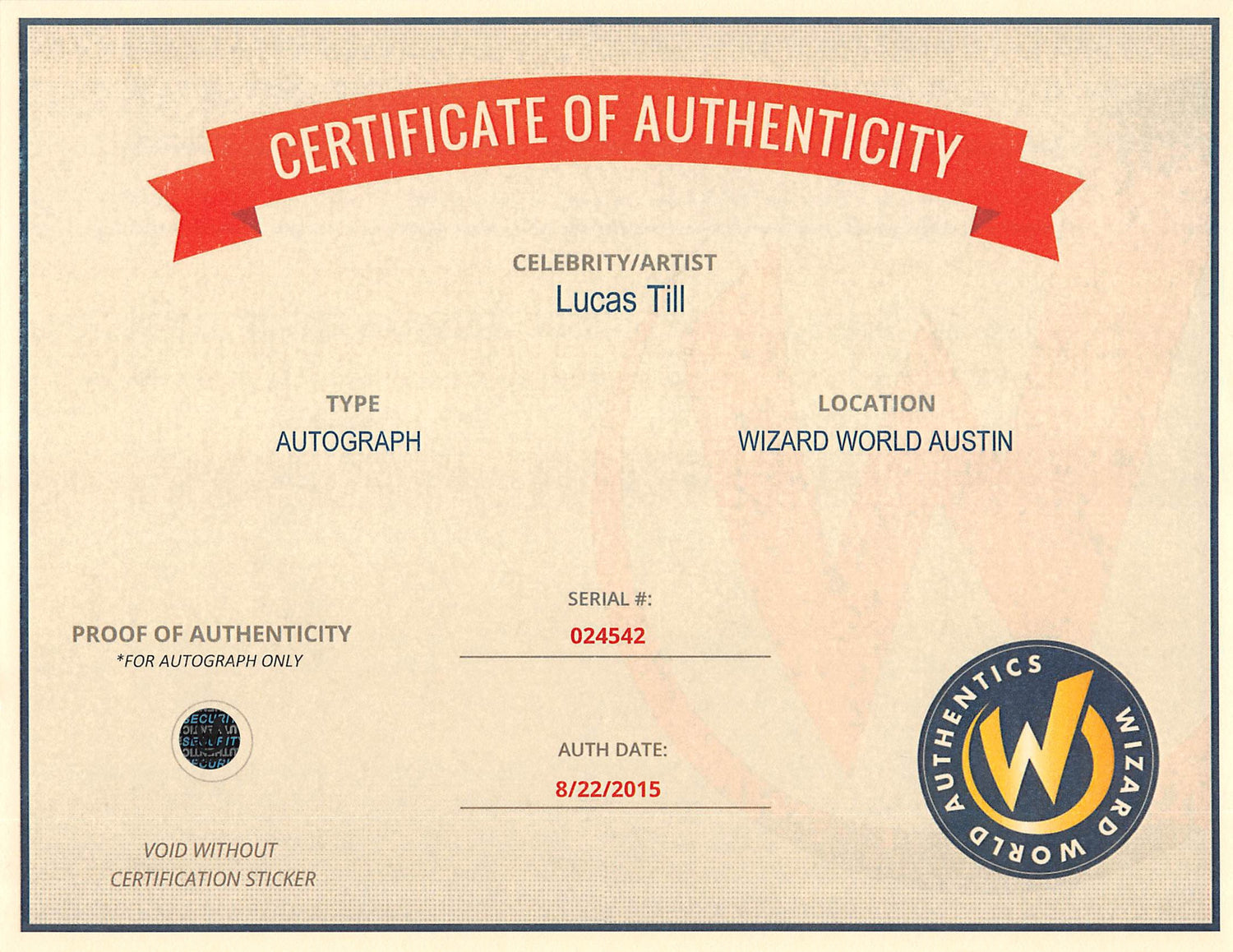 - Witnessed signing—a Wizard World representative was present at the signing event.