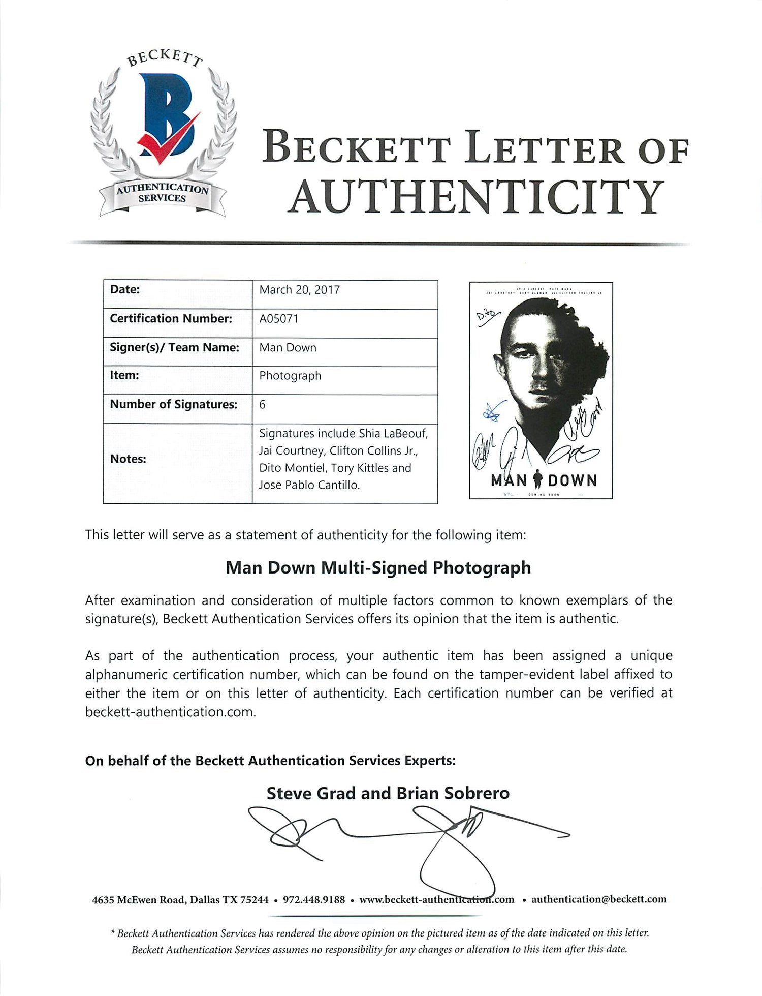 Man Down Cast (6) Labeouf, Courtney, Collins Signed 11x17 Photo BAS #A05071 is backordered and will ship as soon as it is back in stock.