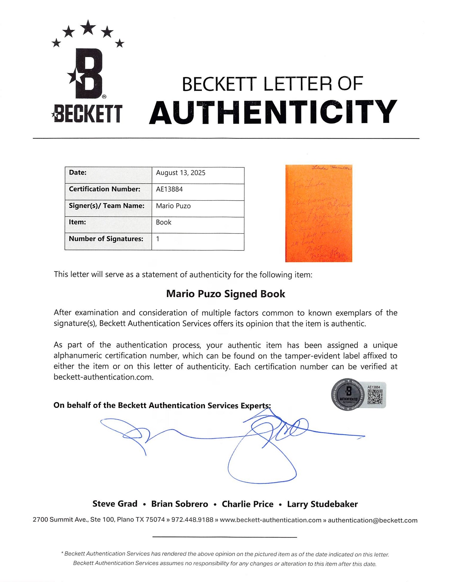 - Certificate of Authenticity (COA) and tamper-evident hologram from Beckett Authentication Services – verifiable on Beckett’s website