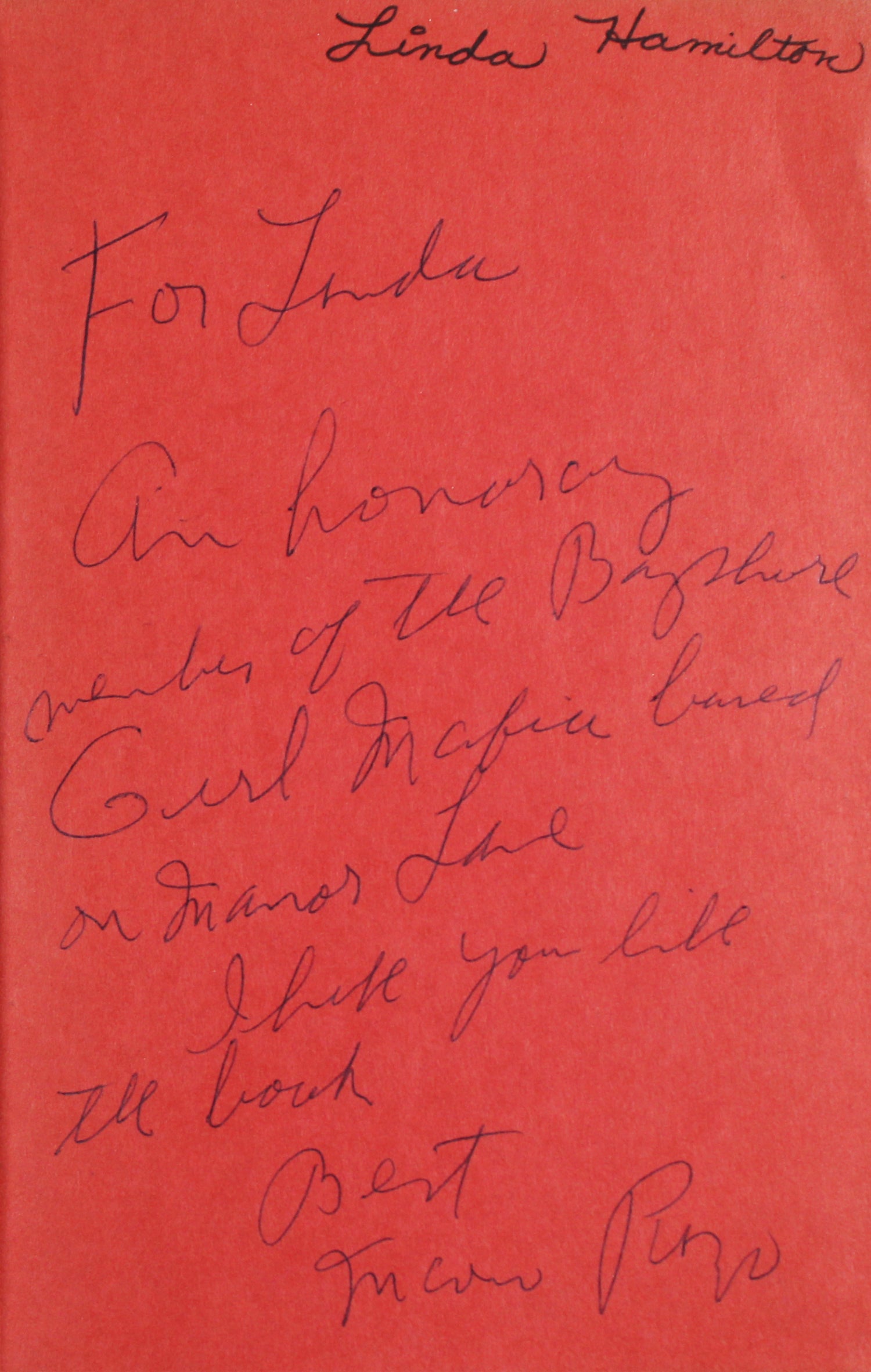 - Ownership signature "Linda Hamilton" above the inscription