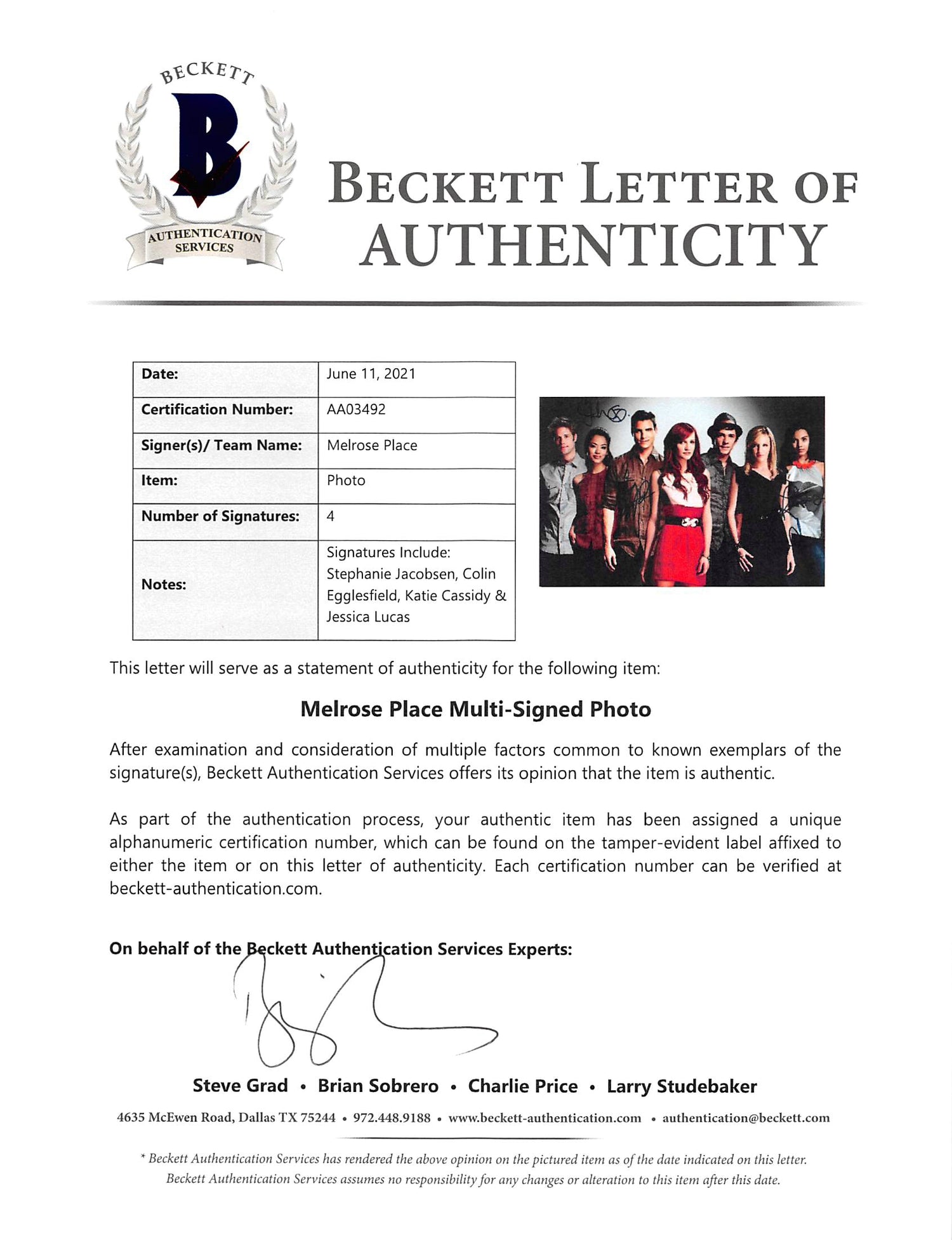This exclusive collectible is a must-have for fans of Melrose Place, bringing together signatures from some of the most memorable cast members. Don’t miss your chance to add this 100% authentic piece of television history to your collection!