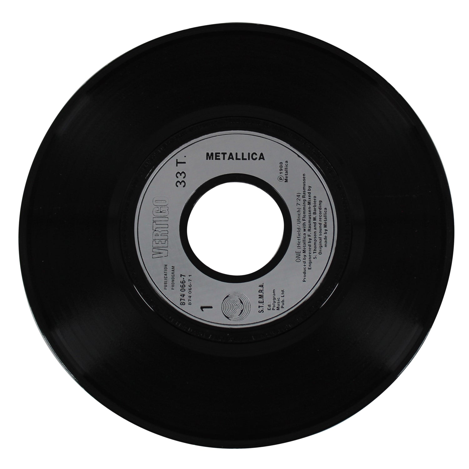 Metallica (4) Hetfield, Ulrich, Hammett +1 Signed One 45 RPM Album Cover BAS