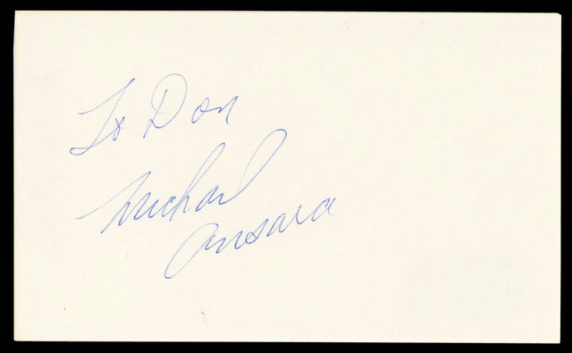 Own a unique piece of Star Trek history with this Michael Ansara Autographed 3x5 Index Card, inscribed with "To Don." A treasured collectible for sci-fi enthusiasts and autograph collectors, this signed card commemorates Ansara’s iconic role as Kang, the Klingon Commander, in the classic Star Trek series.