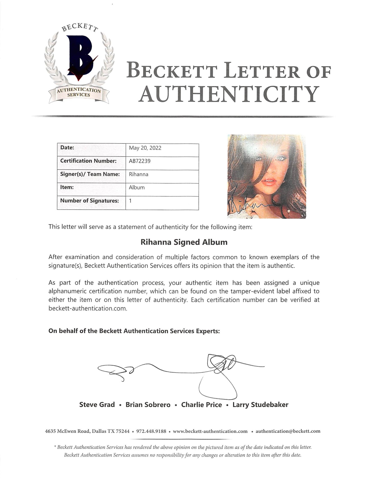 - Authentic Signature – Personally hand-signed by Rihanna, ensuring its exclusivity and value.