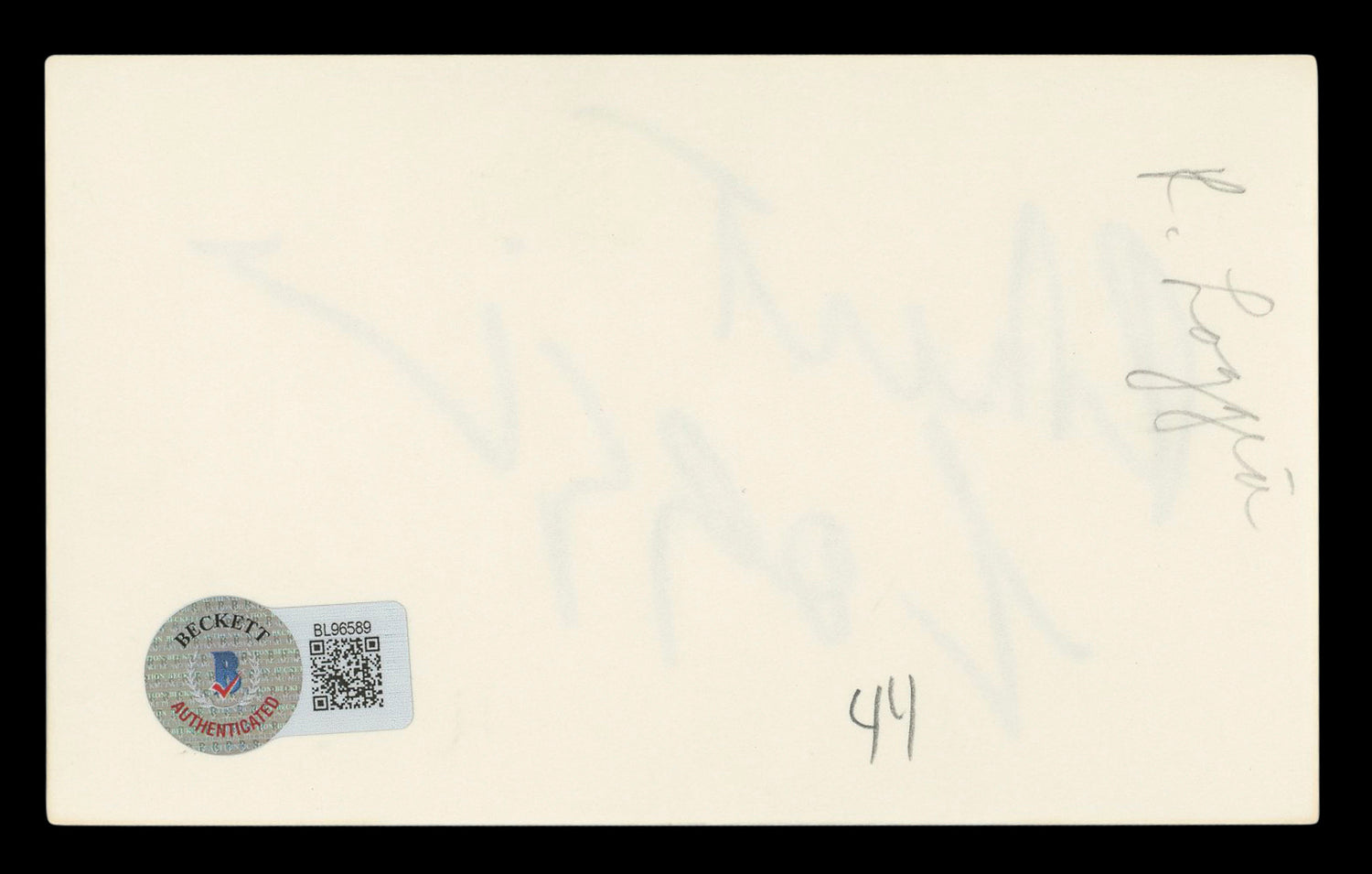 Robert Loggia Big Authentic Signed 3x5 Index Card Autographed BAS #BL96589