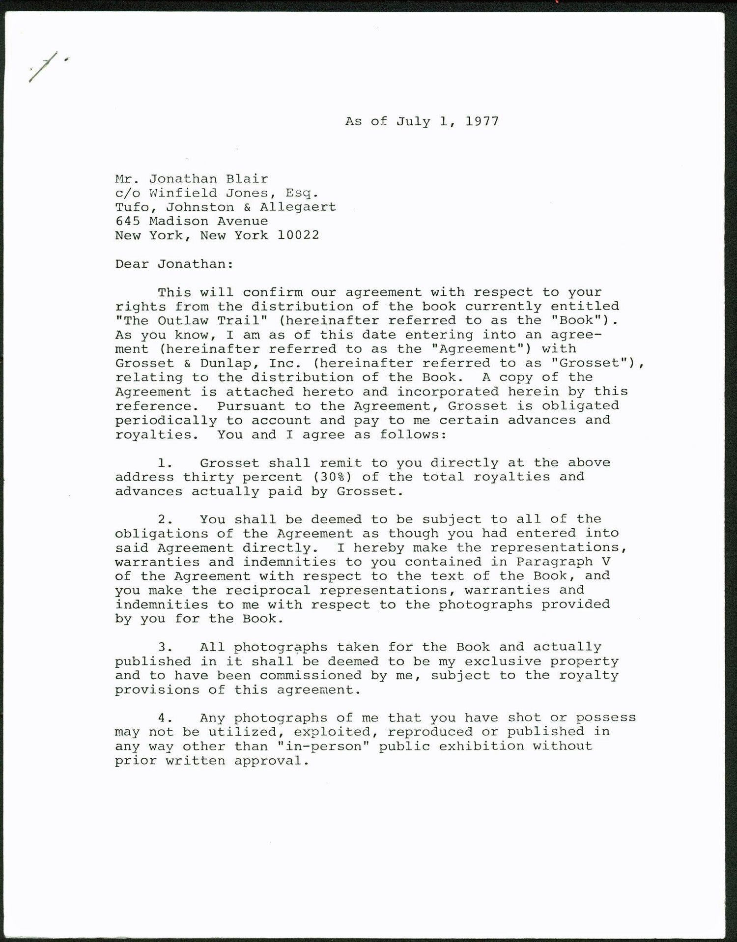 Robert Redford Authentic Signed 8.5x11 2 page 1977 Royalty Contract PSA #Z92221