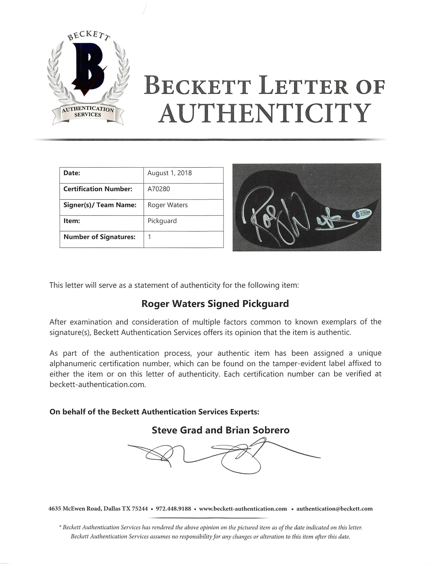 - Authenticity Verified – The signature can be confirmed on the Beckett Authentication Services website.