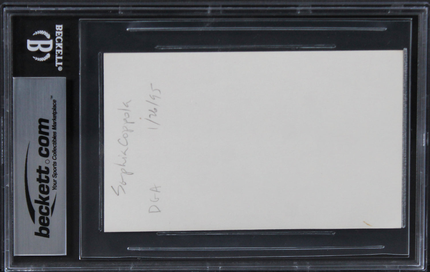 This signed index card is a rare chance to own a piece of cinematic legacy. Secure this Sophia Coppola autographed collectible today before it’s gone!