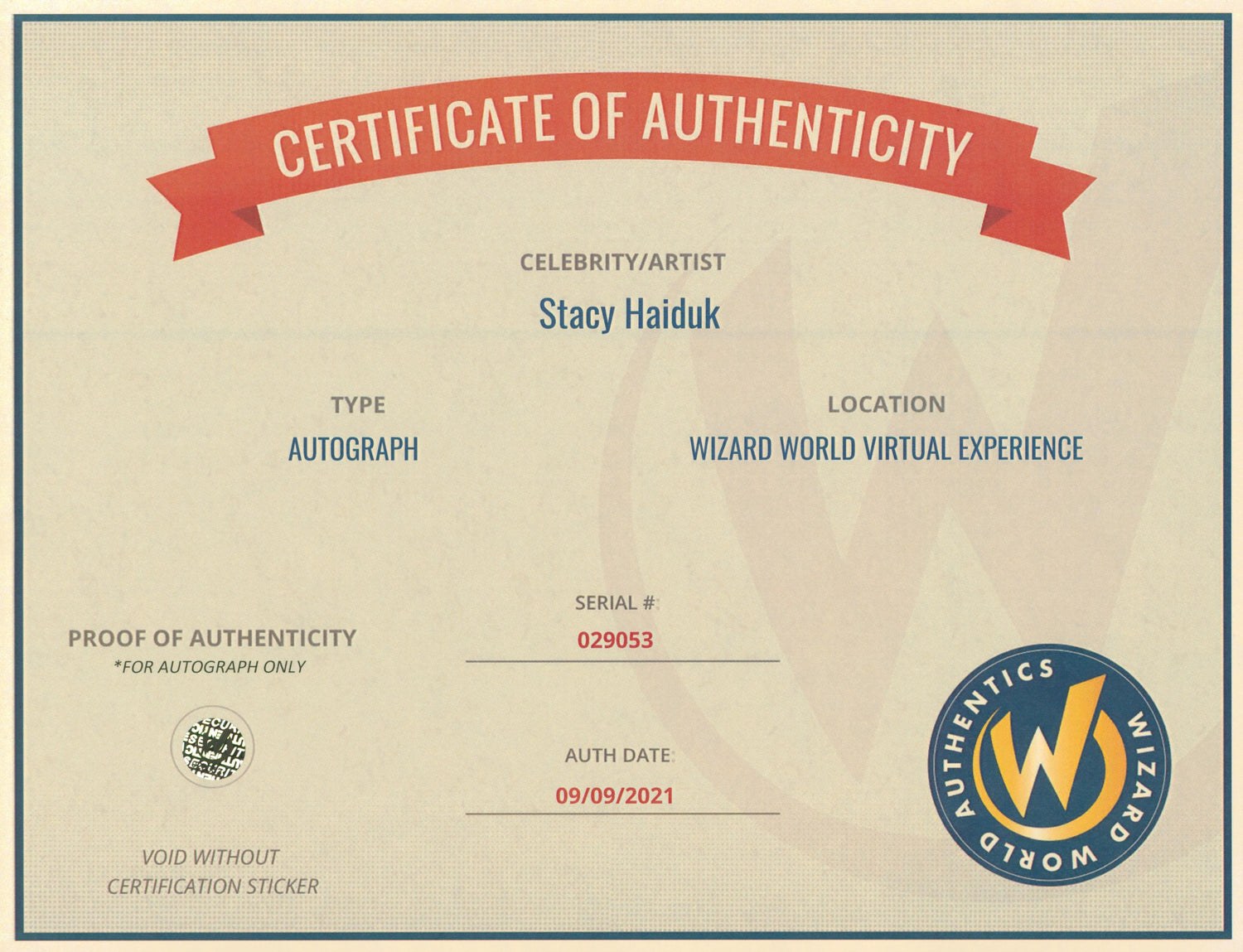 - Authenticated in Person – A Wizard World Authentics representative was present during the signing.