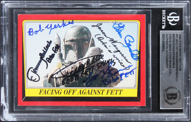 - Personally signed by Jeremy Bulloch (original Boba Fett actor), Jason Wingreen (voice of Boba Fett), Glenn Randall, Dickey Beer, Bob Yerkes, and Louis Friedman (all performed Boba Fett stunts)
