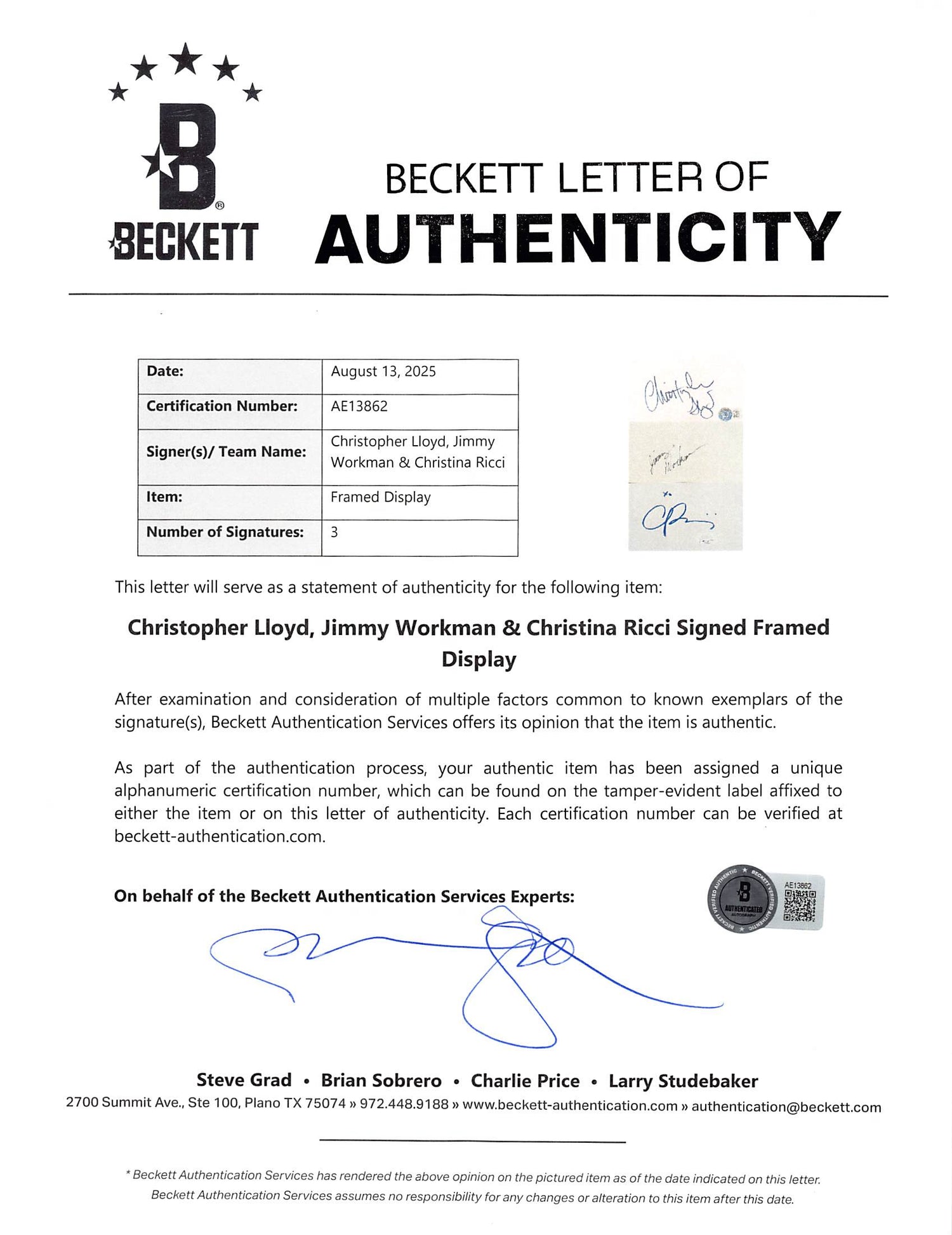 • Personally hand-signed by Christina Ricci, Christopher Lloyd & Jimmy Workman — cast members from the 1991 cult classic, The Addams Family