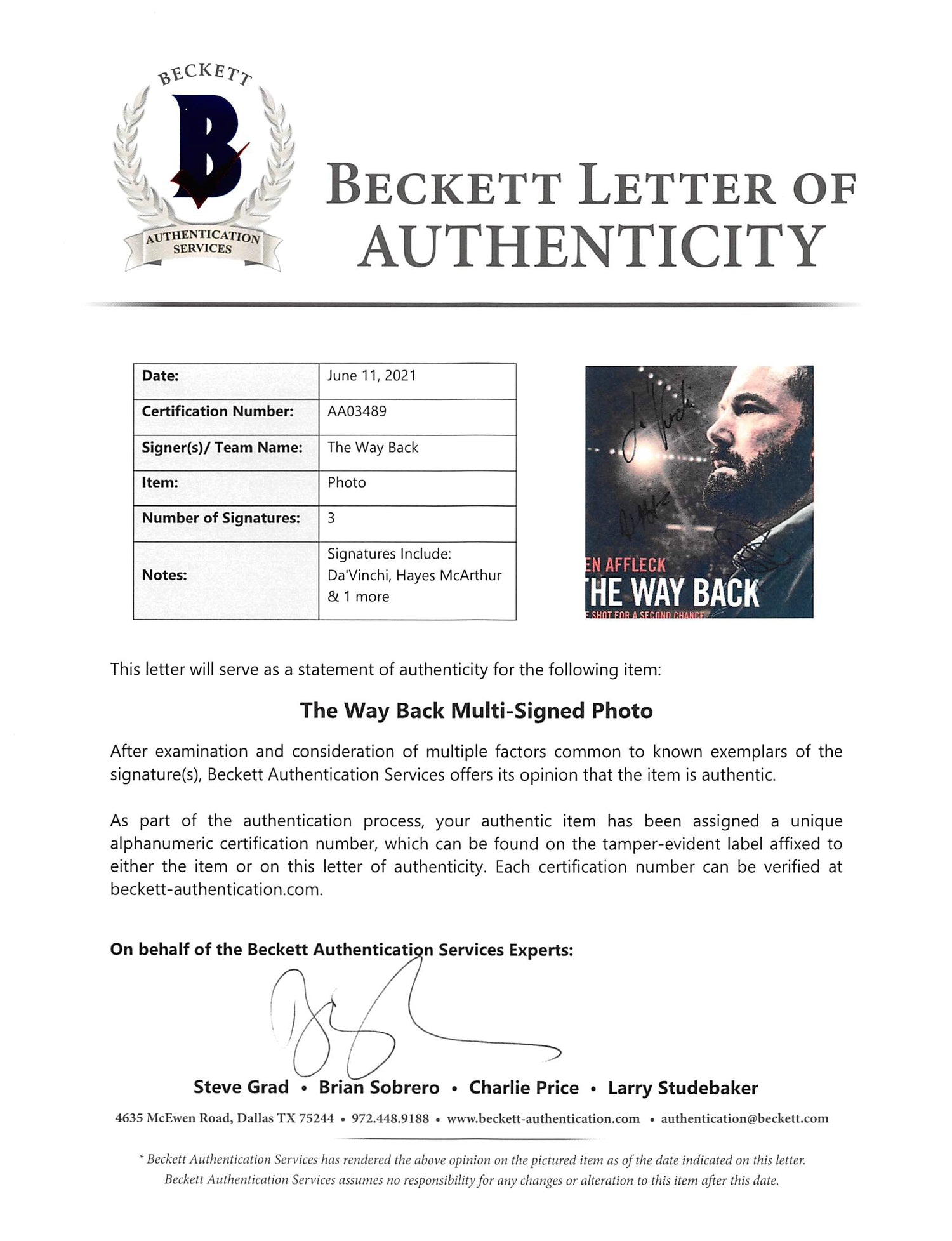 - Authentic Signatures – Hand-signed by DaVinchi, Hayes McArthur, and one more cast member from The Way Back.