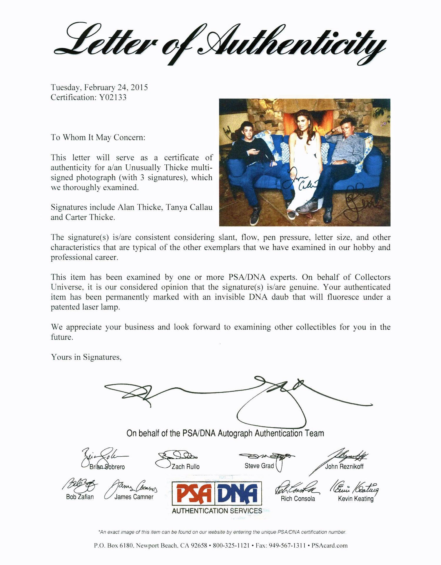 Unusually Thicke (Alan, Carter & Tanya Callau) Signed 8X10 Photo PSA/DNA #Y02133