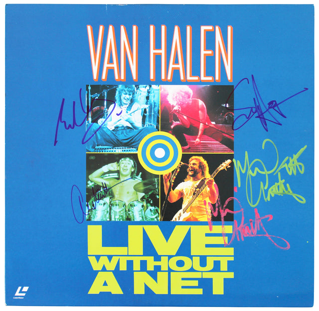 Own a rare piece of rock history with this autographed "Live Without A Net" Laserdisc Cover with Disk, personally signed by Eddie Van Halen, Alex Van Halen, Sammy Hagar, and Michael Anthony (twice) of Van Halen. This highly collectible memorabilia celebrates the legendary band's electrifying 1986 live performance, making it a must-have for fans and collectors alike. Key Features: