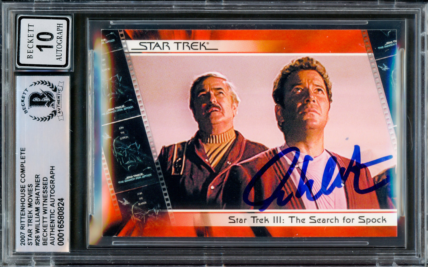 William Shatner Autographed 2007 Rittenhouse Card #26 Star Trek Captain Kirk Auto Grade Gem Mint 10 Complete Movies Beckett BAS #16580824