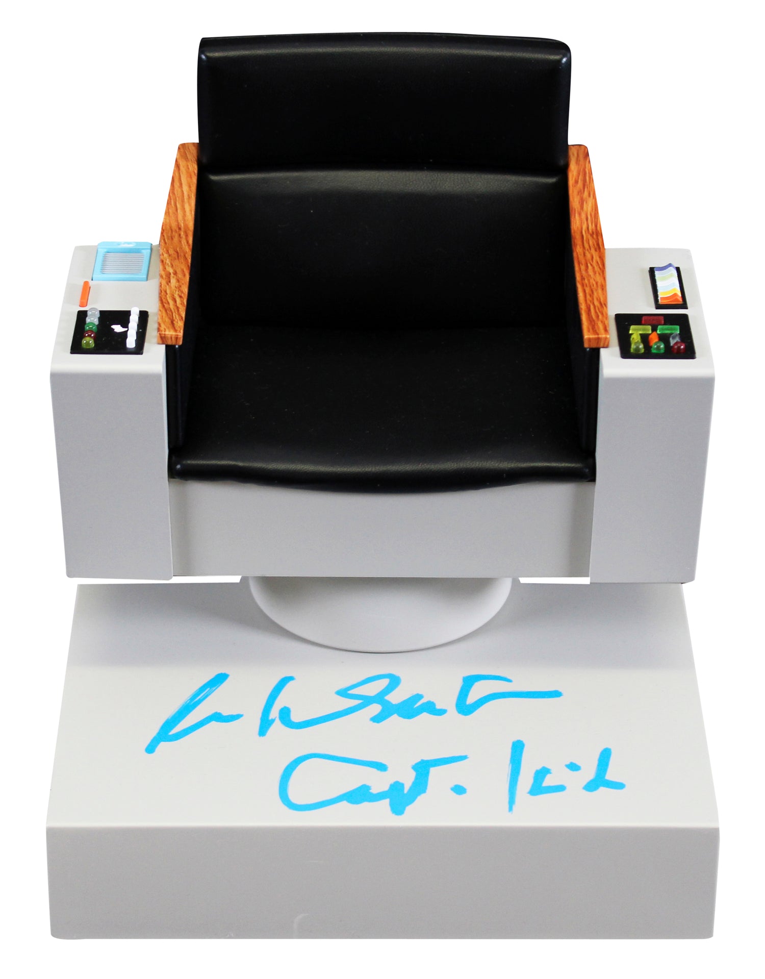 Own a piece of science fiction history with this William Shatner Autographed QMx Master Series 1:6 Scale FX Replica Captain's Chair, personally signed by the legendary actor who brought Captain Kirk to life in Star Trek: The Original Series. This intricately crafted replica comes inscribed with “Captain Kirk,” making it the ultimate collector’s item for die-hard Trekkies and pop culture enthusiasts alike. As authentic as it is iconic, this piece is officially certified by Beckett Authentication Services (BAS)—a trusted name in autograph authentication. As part of the BAS Witnessed Protection Program, a Beckett representative was present during the autograph signing event with William Shatner, ensuring the signature’s authenticity. While multiple units of this item were signed, each autograph is uniquely hand-applied, giving your collectible its own individual character.