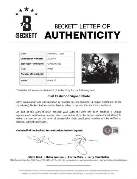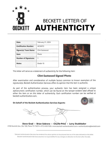 Clint Eastwood Good, the Bad & the Ugly Signed 8x10 Photo Auto 10! BAS #AC26955