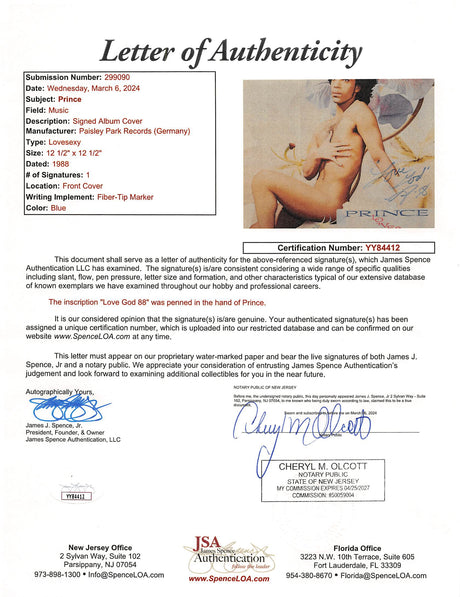 Prince Authentic Signed Lovesexy Album Cover W/ Vinyl Autographed JSA #YY84412