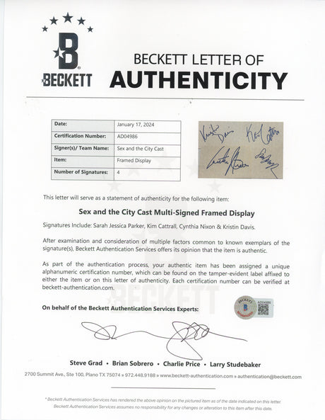 Sex And The City (4) Parker, Cattrall, Nixon & Davis Signed Framed Display BAS
