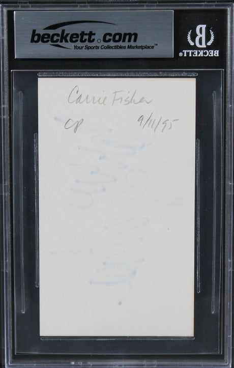 Carrie Fisher Star Wars Authentic Signed 3x5 Index Card Autographed BAS Slab 2