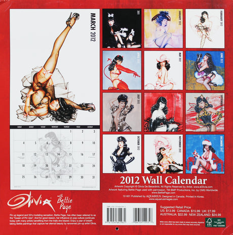 Olivia De Berardinis Signed 2012 Bettie Page Pin-Up Art Calendar BAS #BA74072