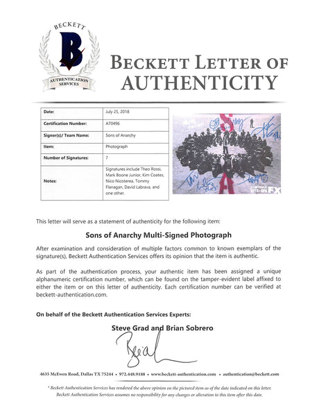 Sons of Anarchy (7) Coates, Nicoterea Flanagan +4 Signed 11x14 Photo BAS #A70496