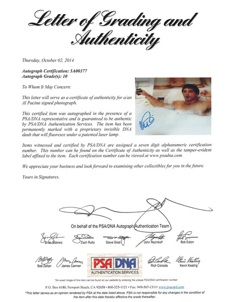 Al Pacino Scarface Signed 11x14 Photo Auto Graded Gem Mint 10! PSA Itp #5A00377