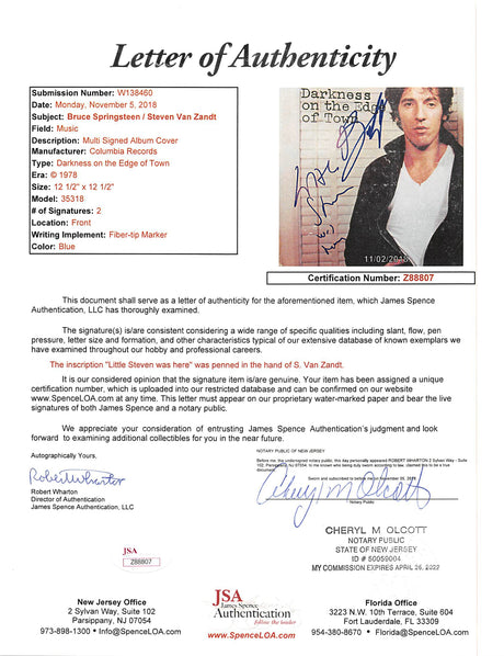 Bruce Springsteen & Steven Van Zandt Signed Album Cover W/ Vinyl JSA #Z88807