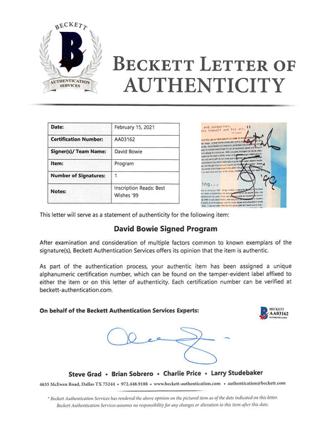 David Bowie Signed Virgin Records Press Release Hours LP Program BAS #AA03162