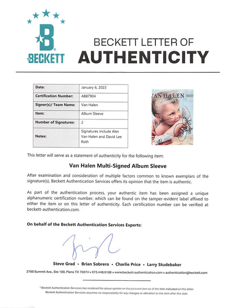 Alex Van Halen & David Lee Roth Van Halen Signed 1984 Album Cover BAS #AB87904