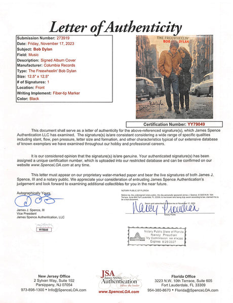 Bob Dylan Signed The Freewheelin' Bob Dylan Album Cover W/ Vinyl JSA #YY79049
