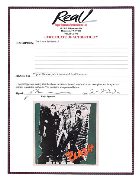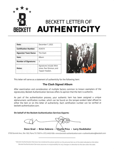 The Clash (3) Jones, Simmon, & Headon Signed Self Titled Album Cover BAS #A54019