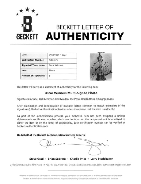 Oscar Winners (5) Lemmon, Malden, Pesci, Buttons & Burns Signed 8x10 Photo BAS